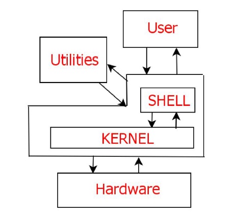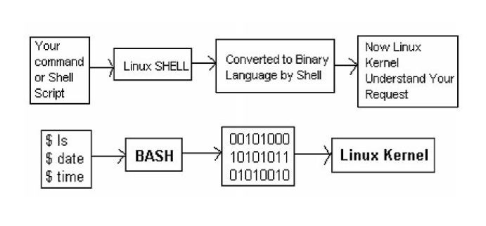 powłoką systemu operacyjnego (shell). Jądro systemu zawiera wszelkie podprogramy potrzebne do przeprowadzania operacji wejścia i wyjścia, zarządzania plikami itp. Powłoka pozwala korzystać z tych podprogramów za pomocą wiersza poleceń. Poza tym, powłoki obsługują również język programowania.